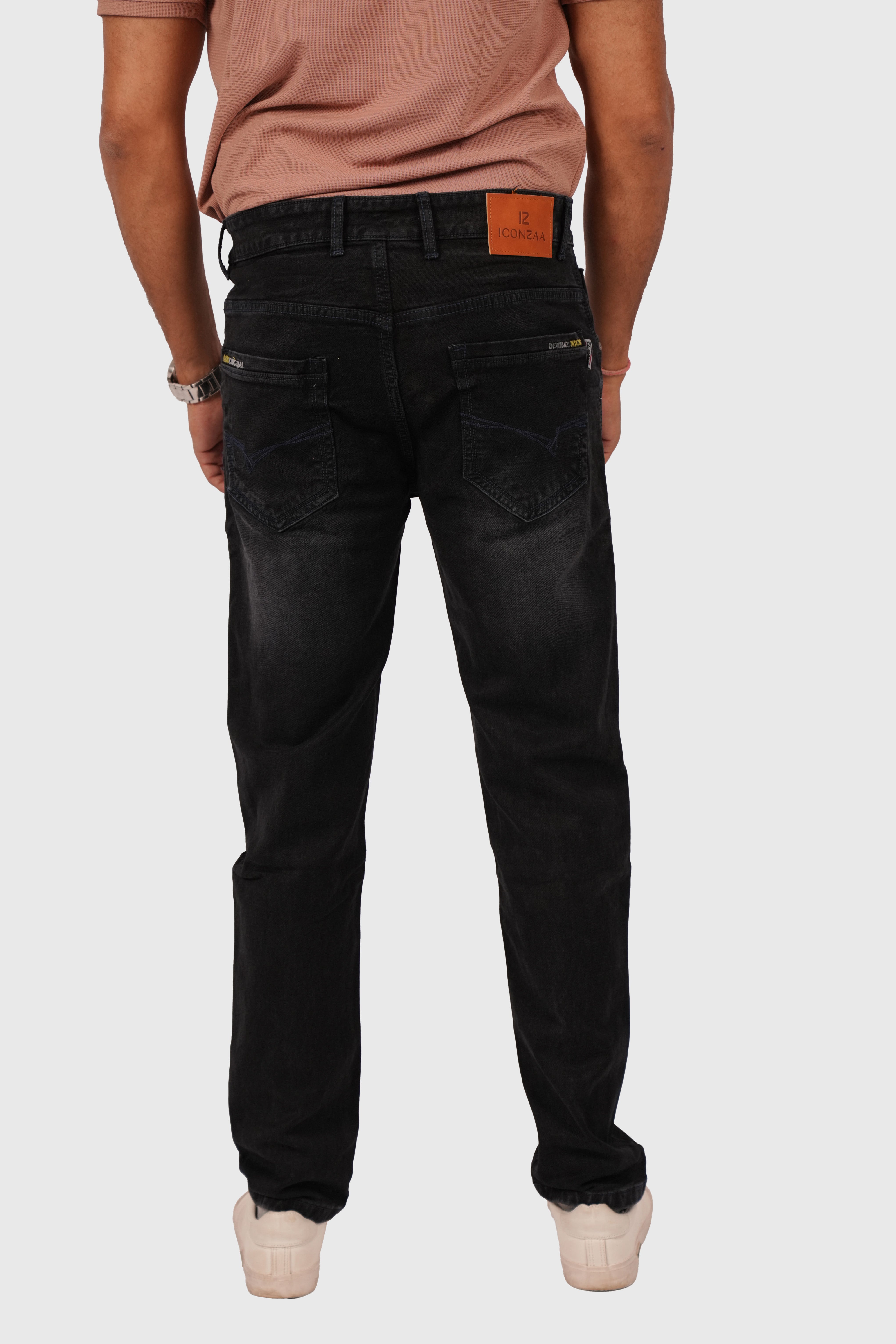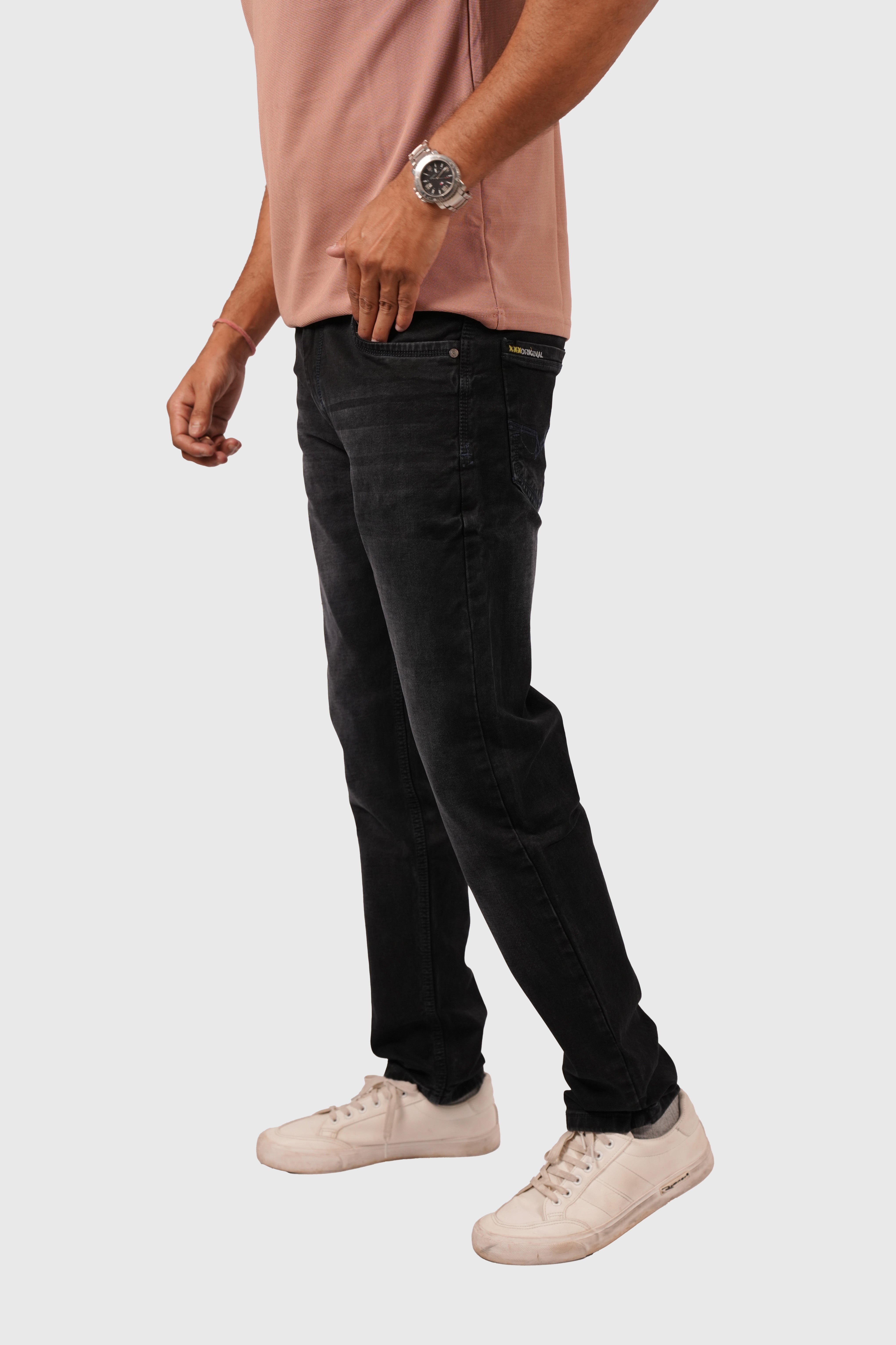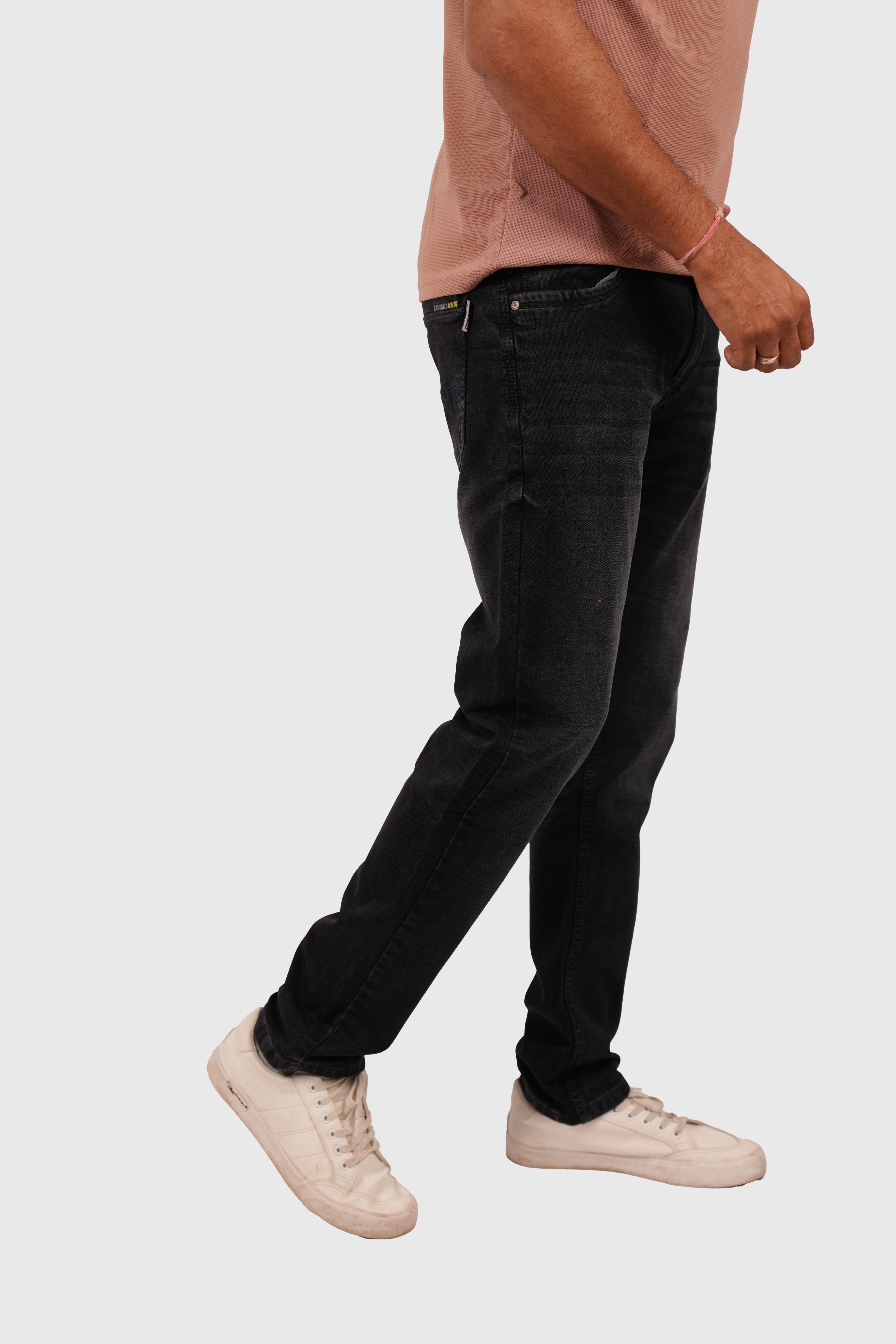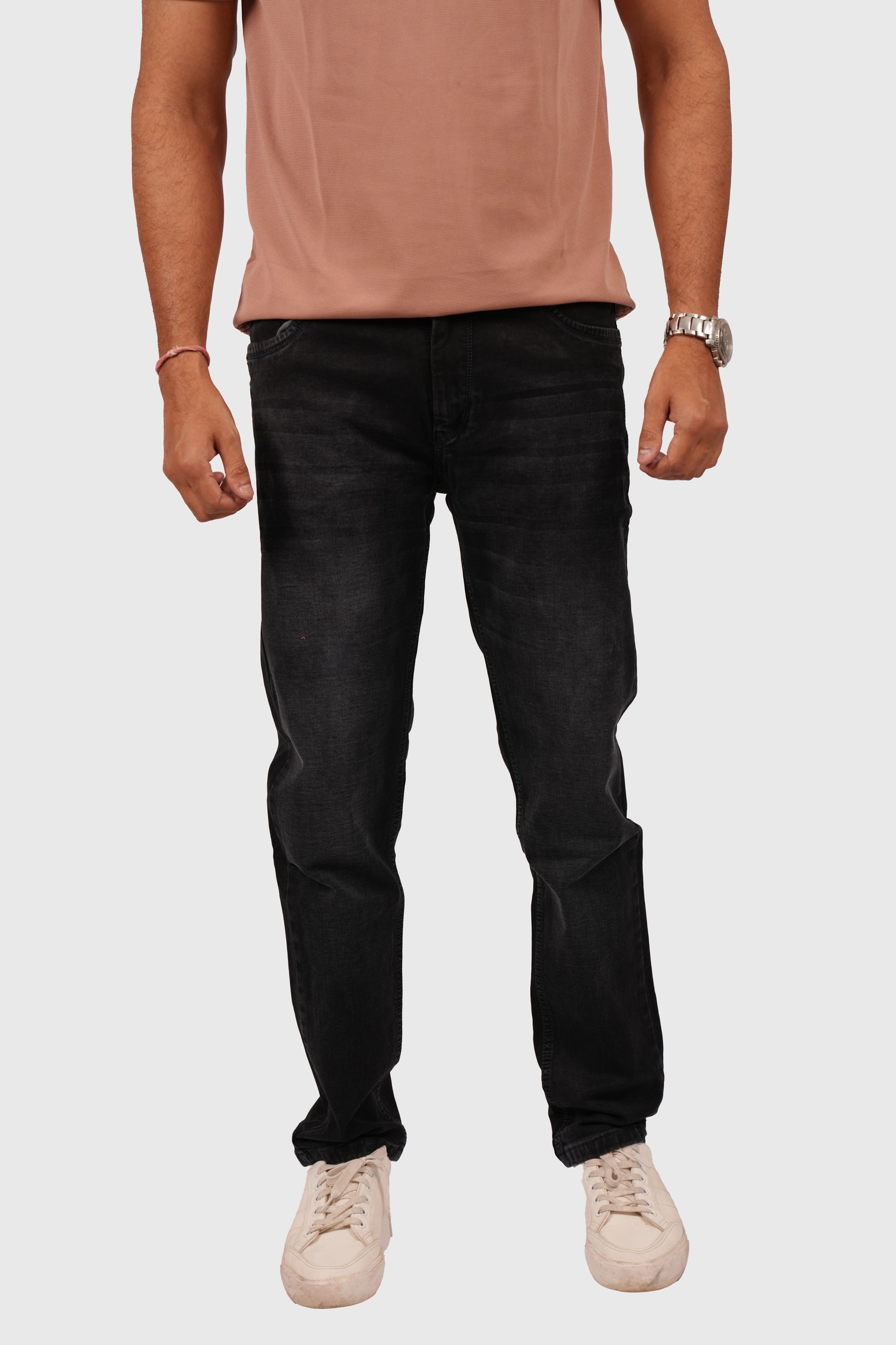 Men’s Black Knitted Narrow Fit Stretchable Jeans – White Wash