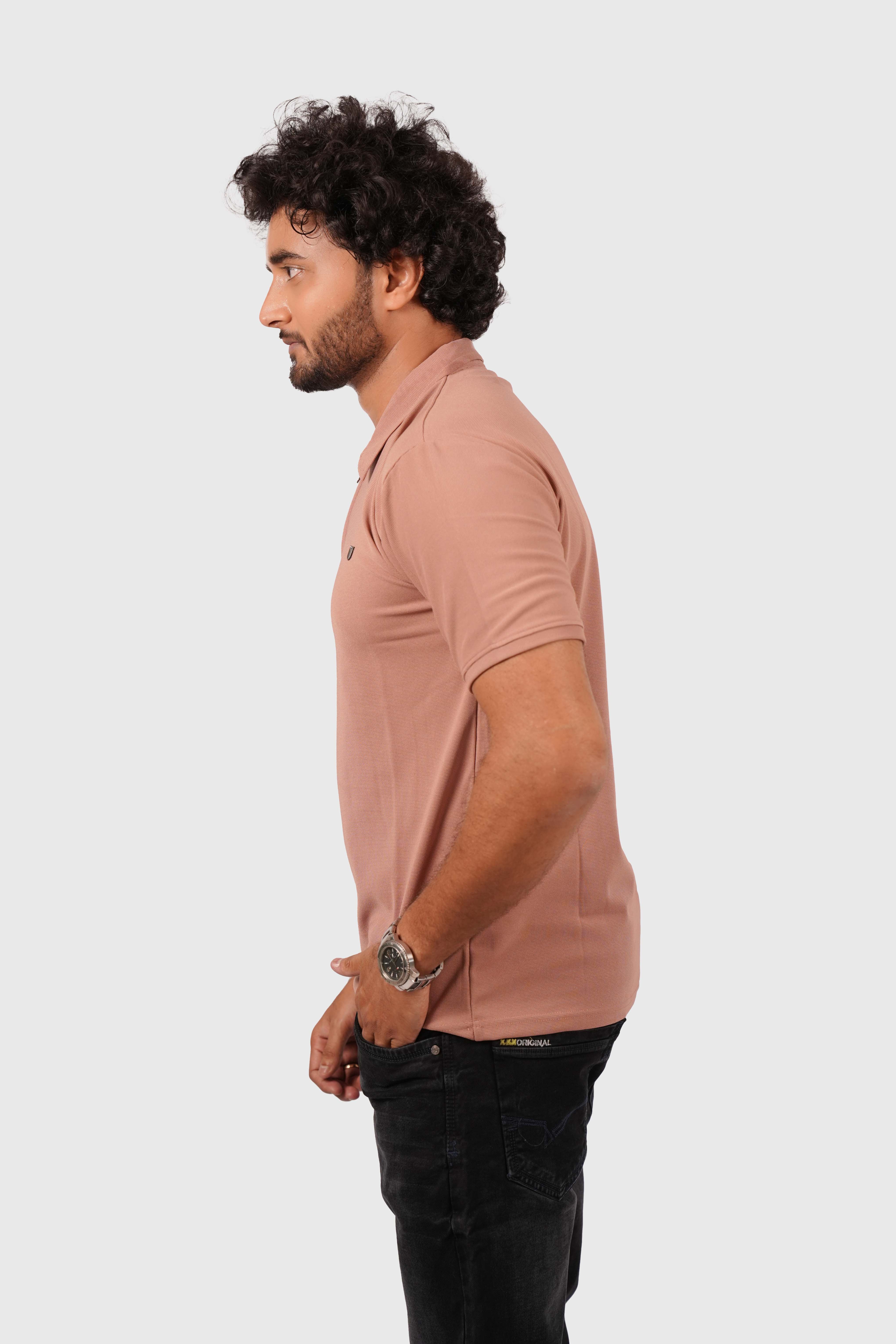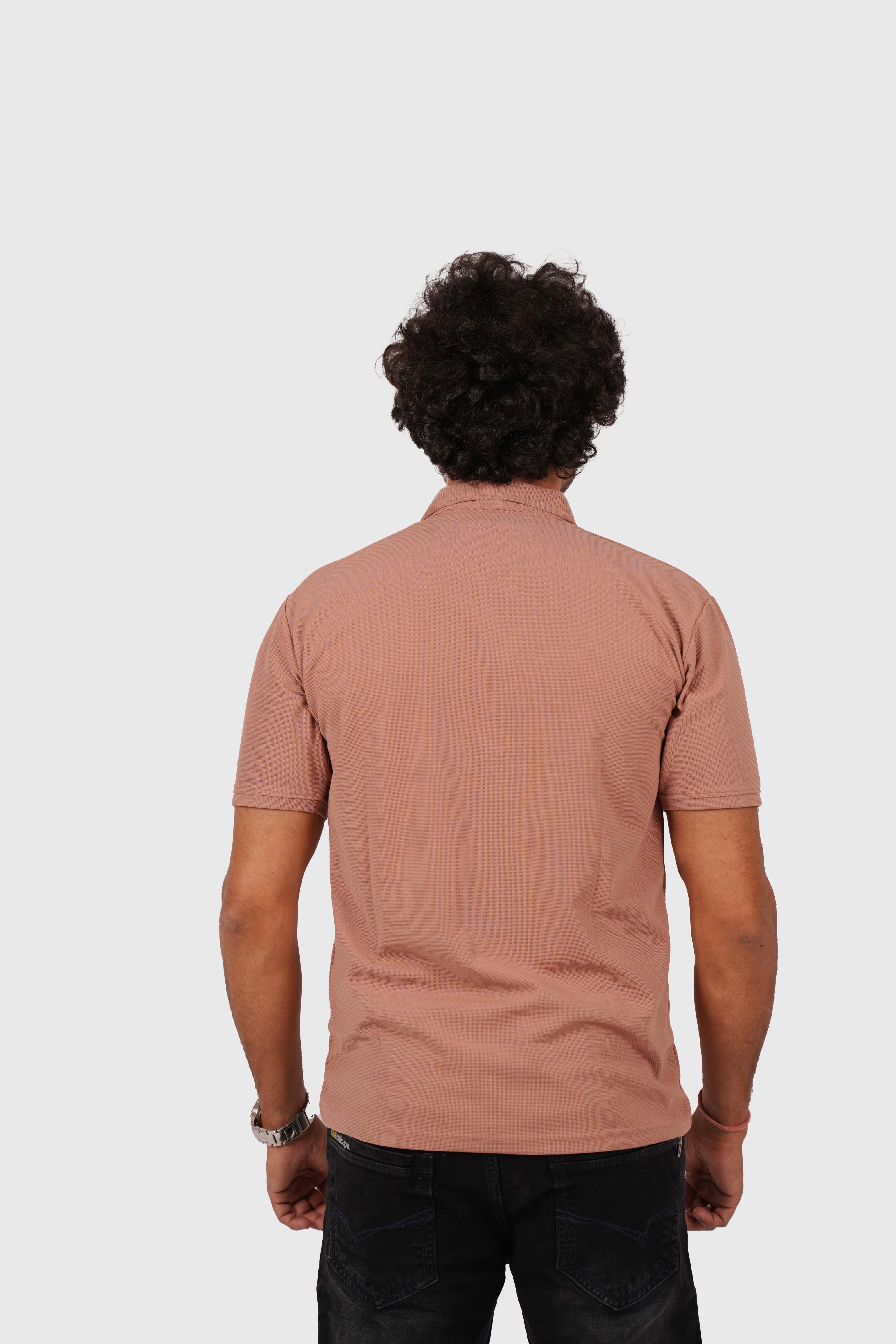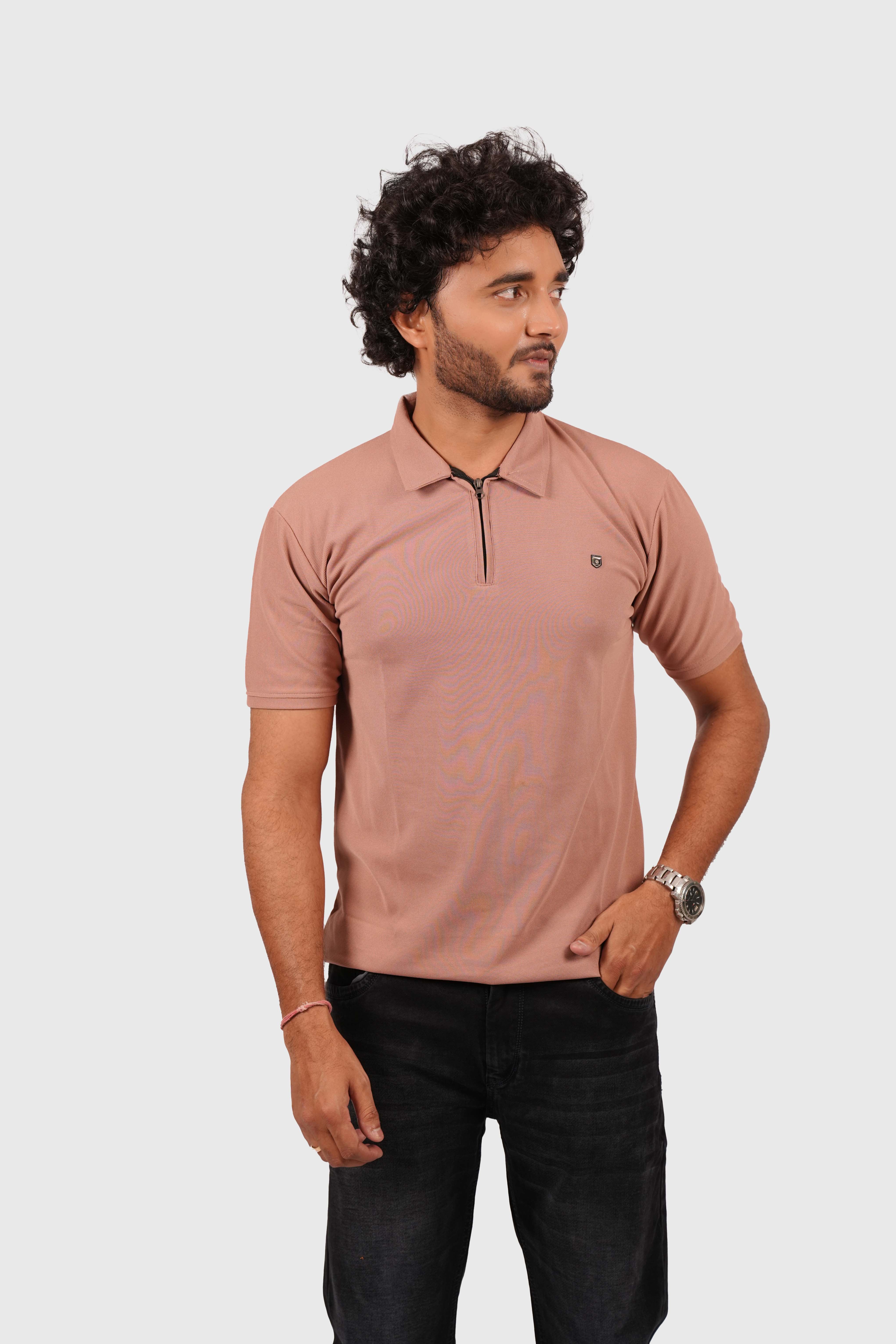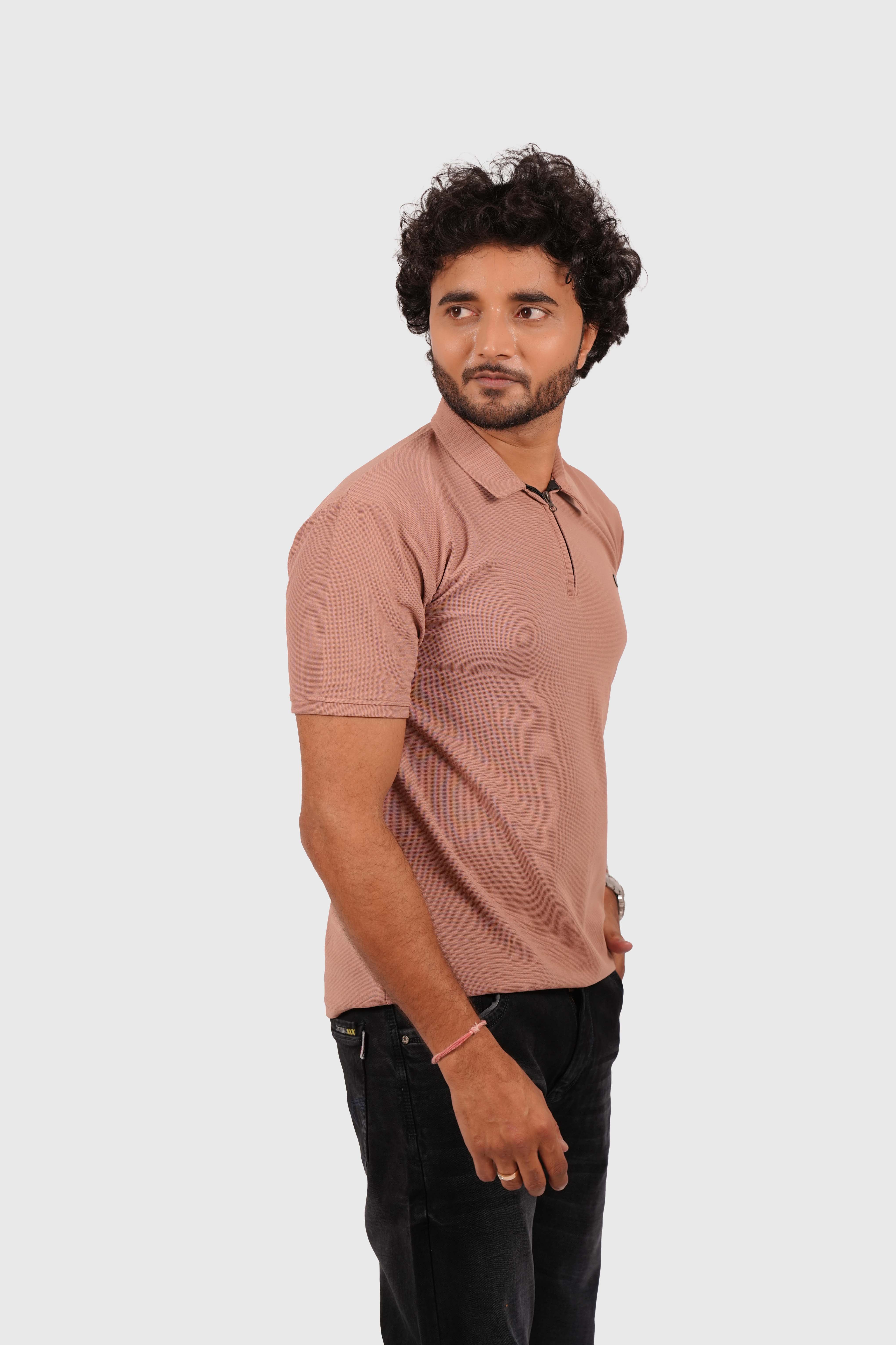 Men’s Dusty Pink Polo T-Shirt with Zip Collar – Casual Regular Fit