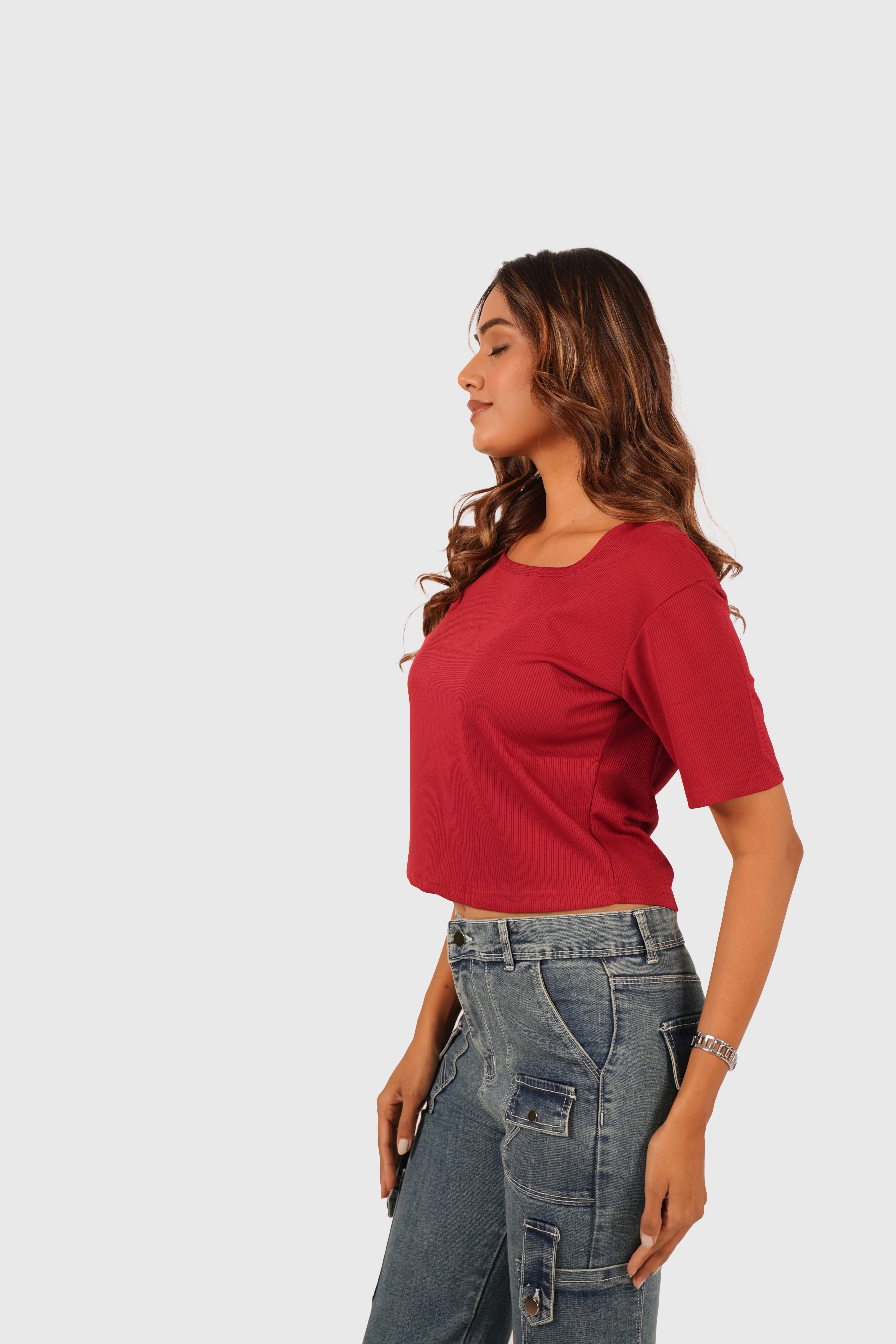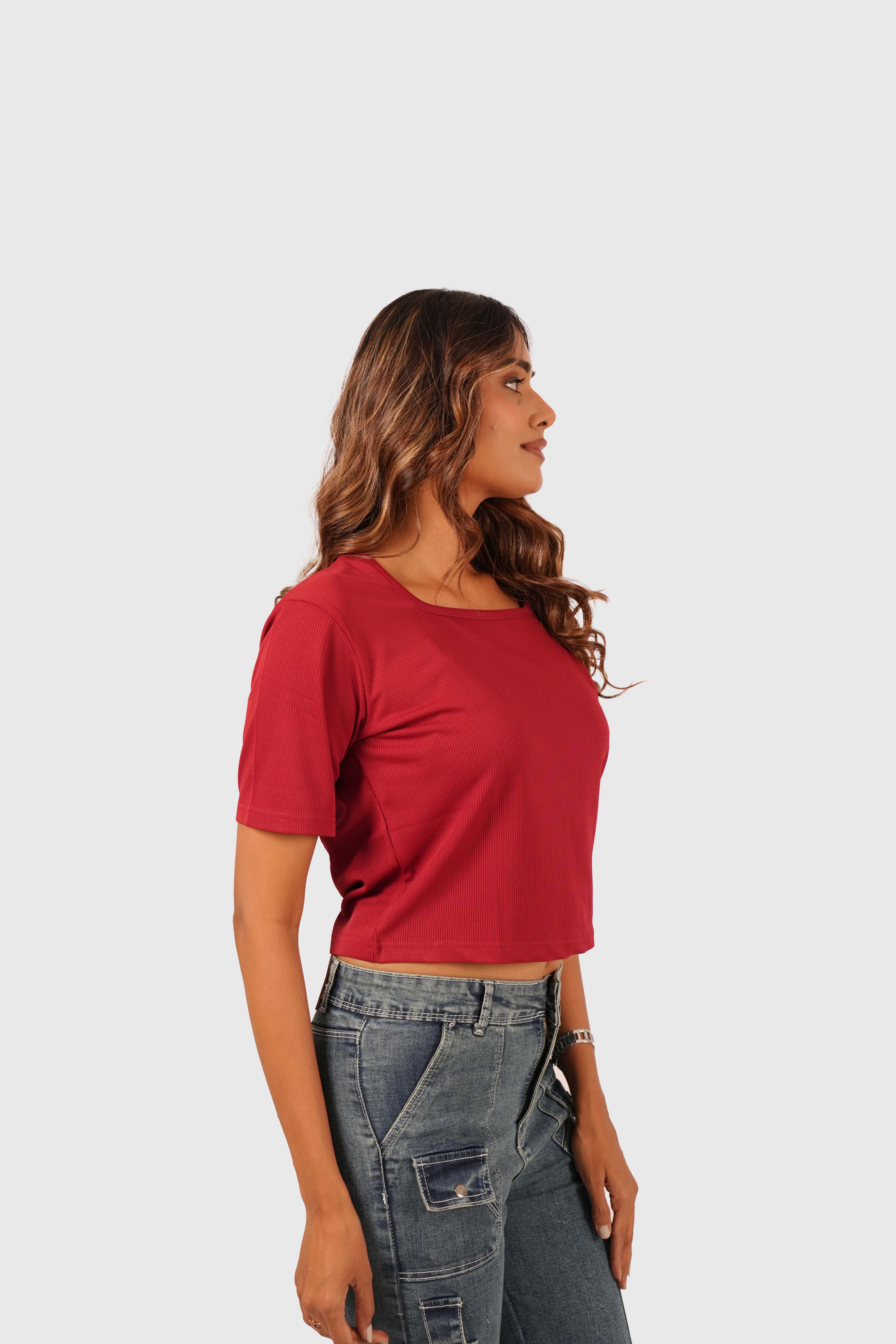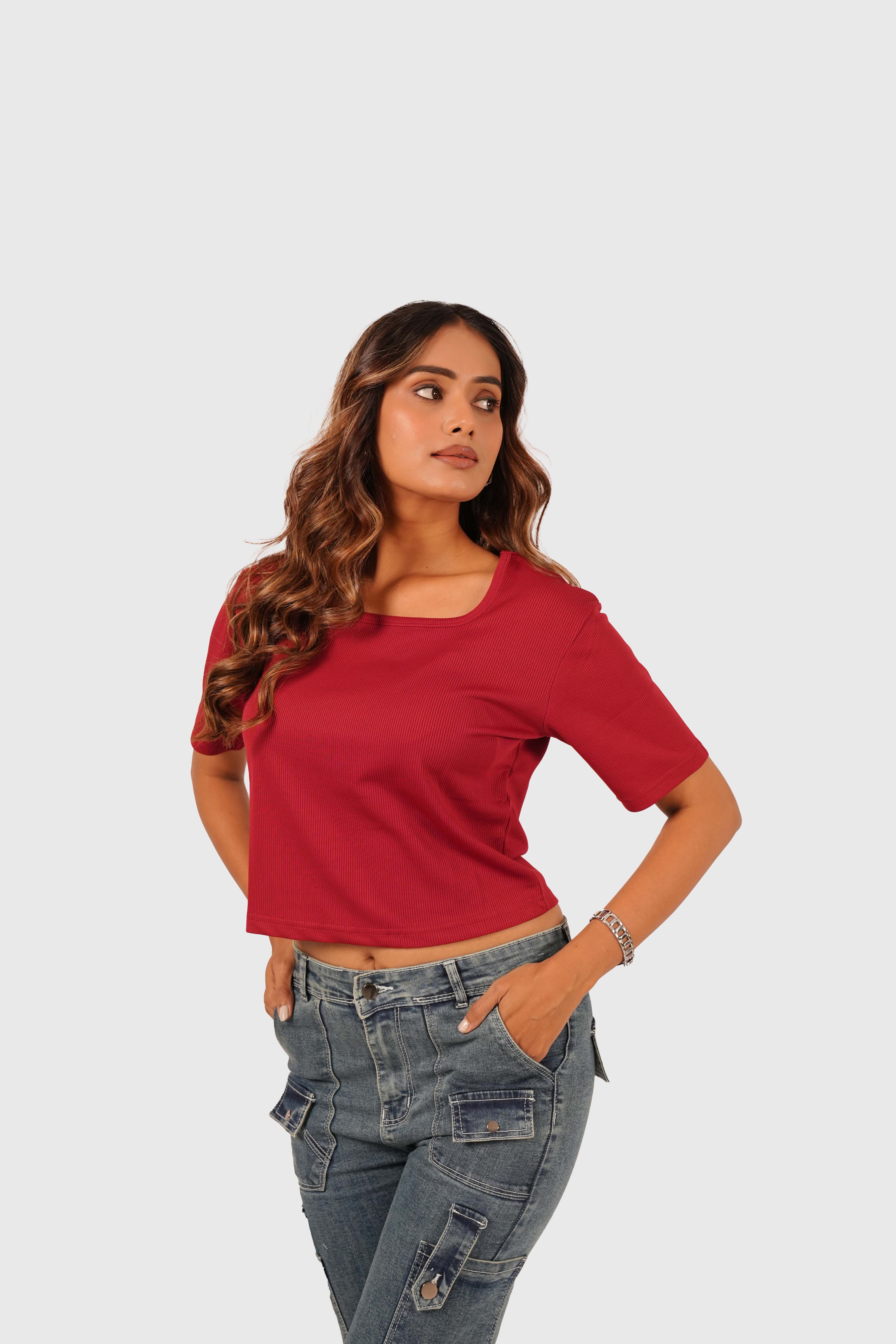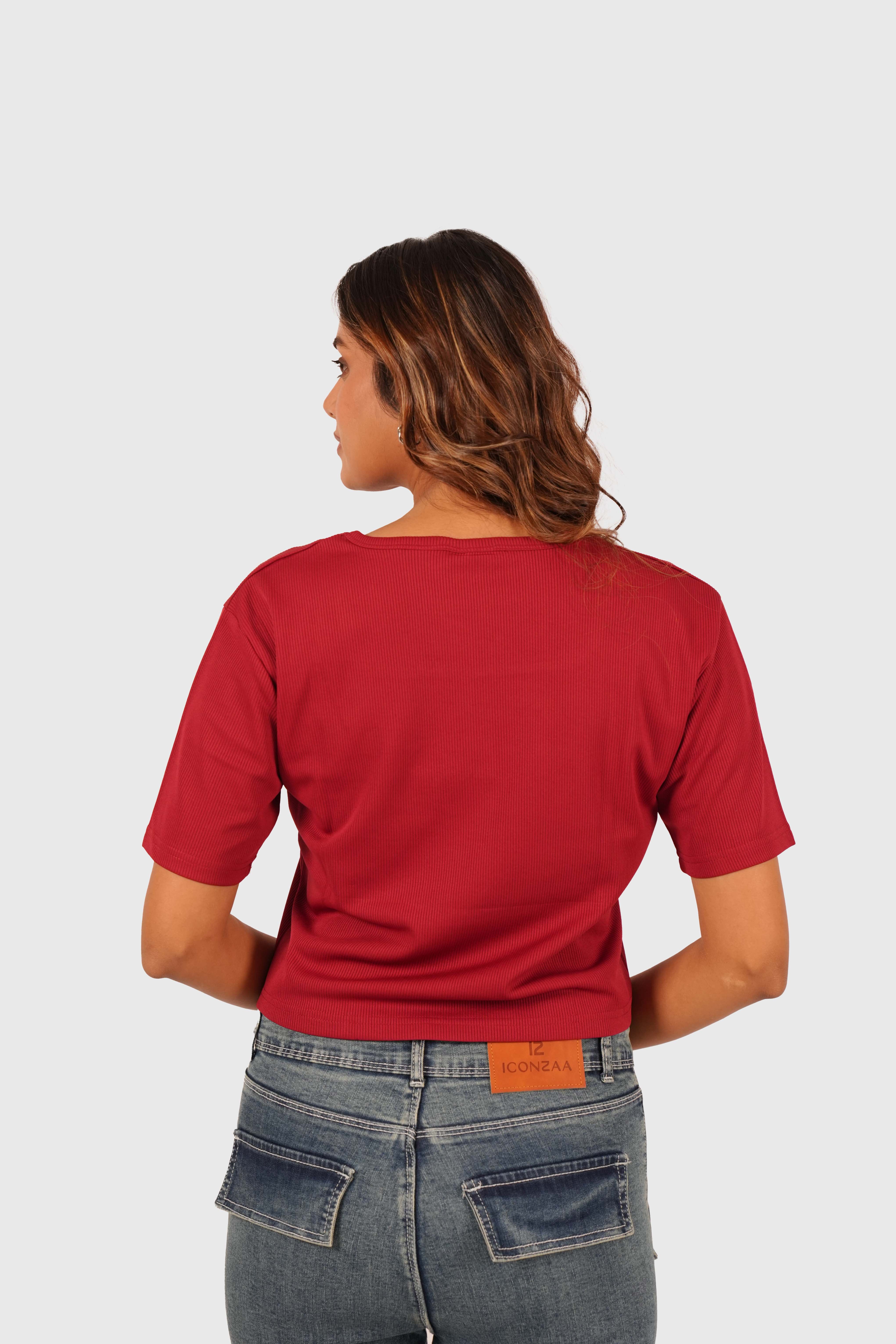 Crafted from stretchable imported fabric, this women’s red crop top delivers bold color and stylish comfort for versatile everyday wear.