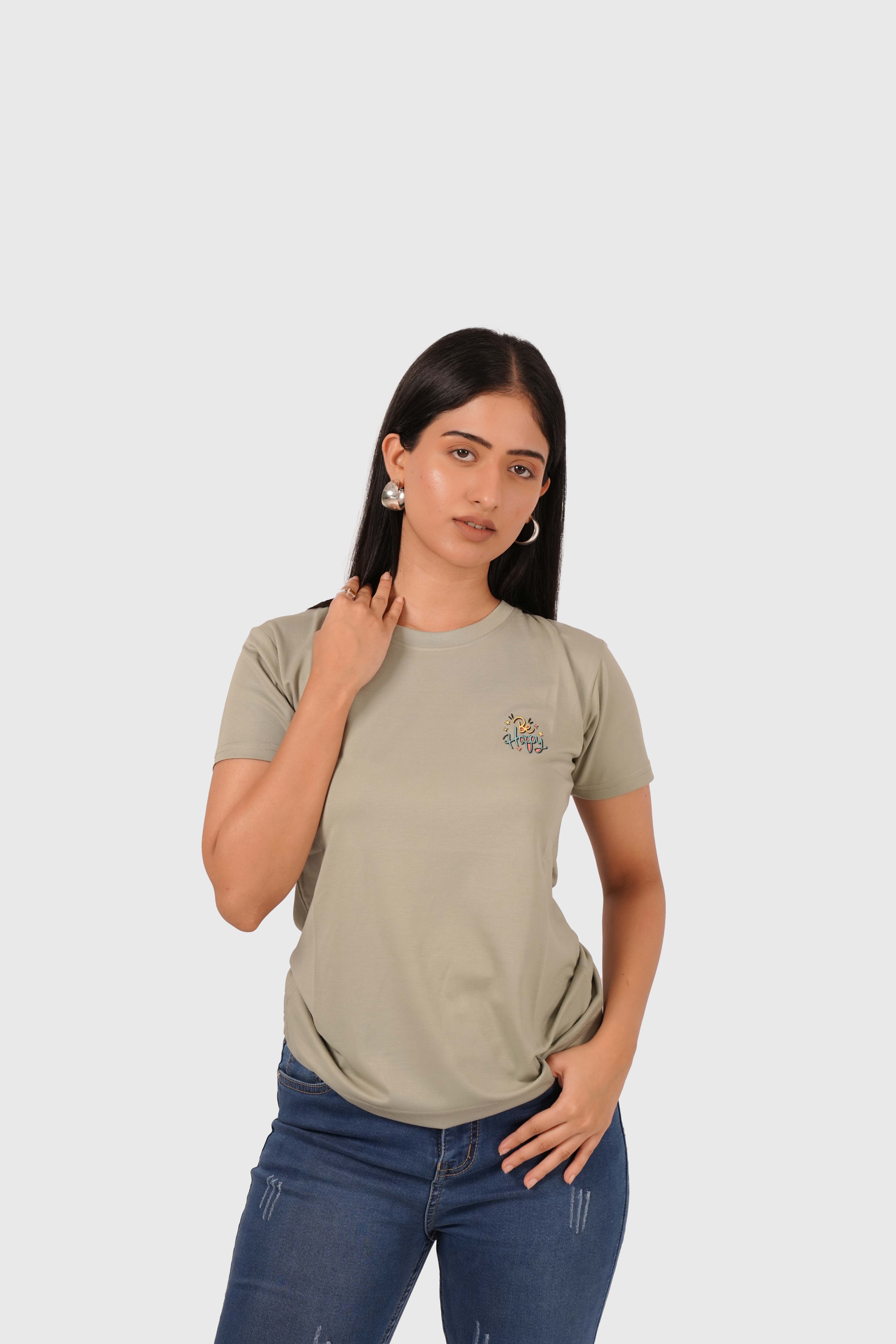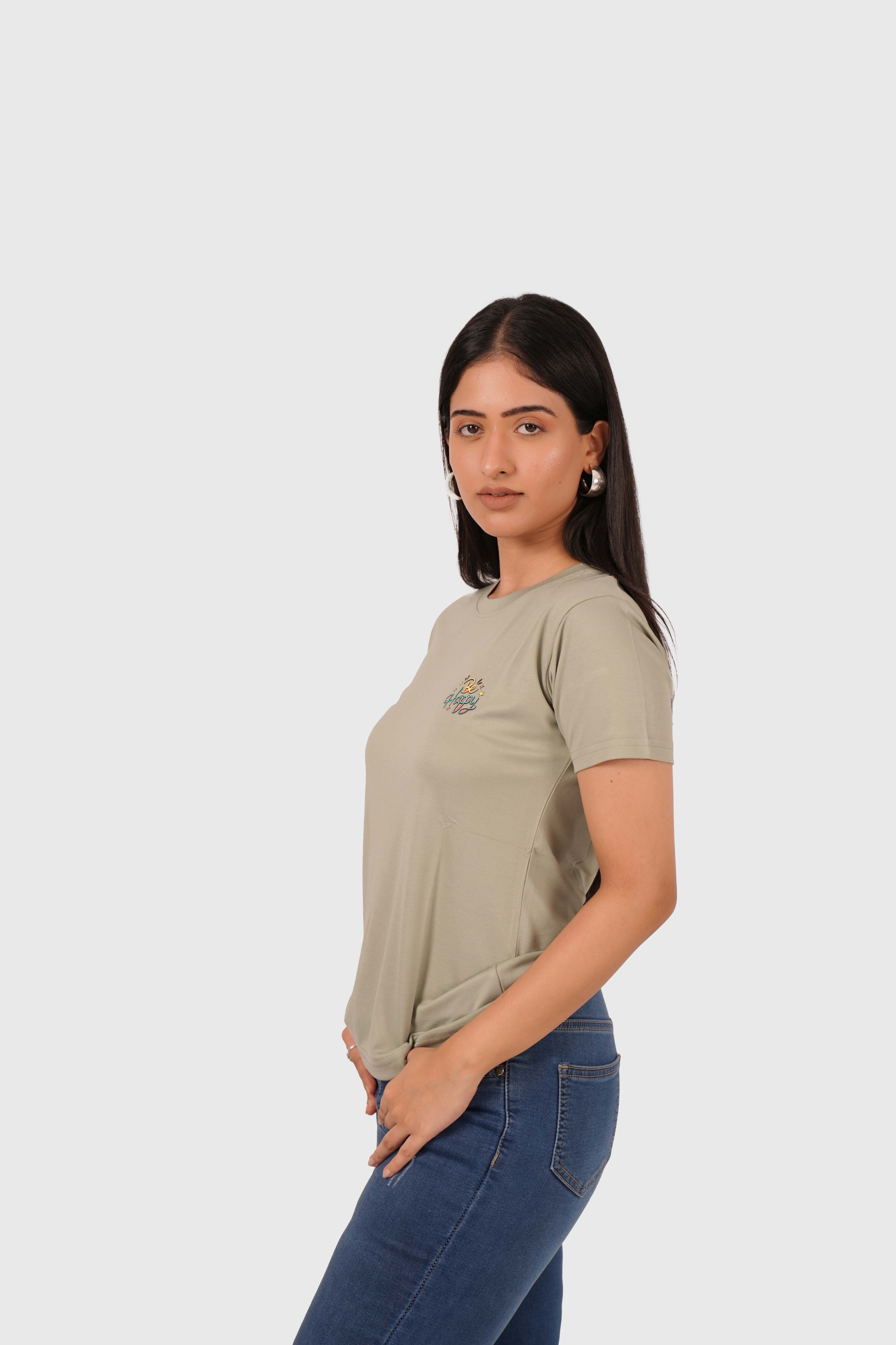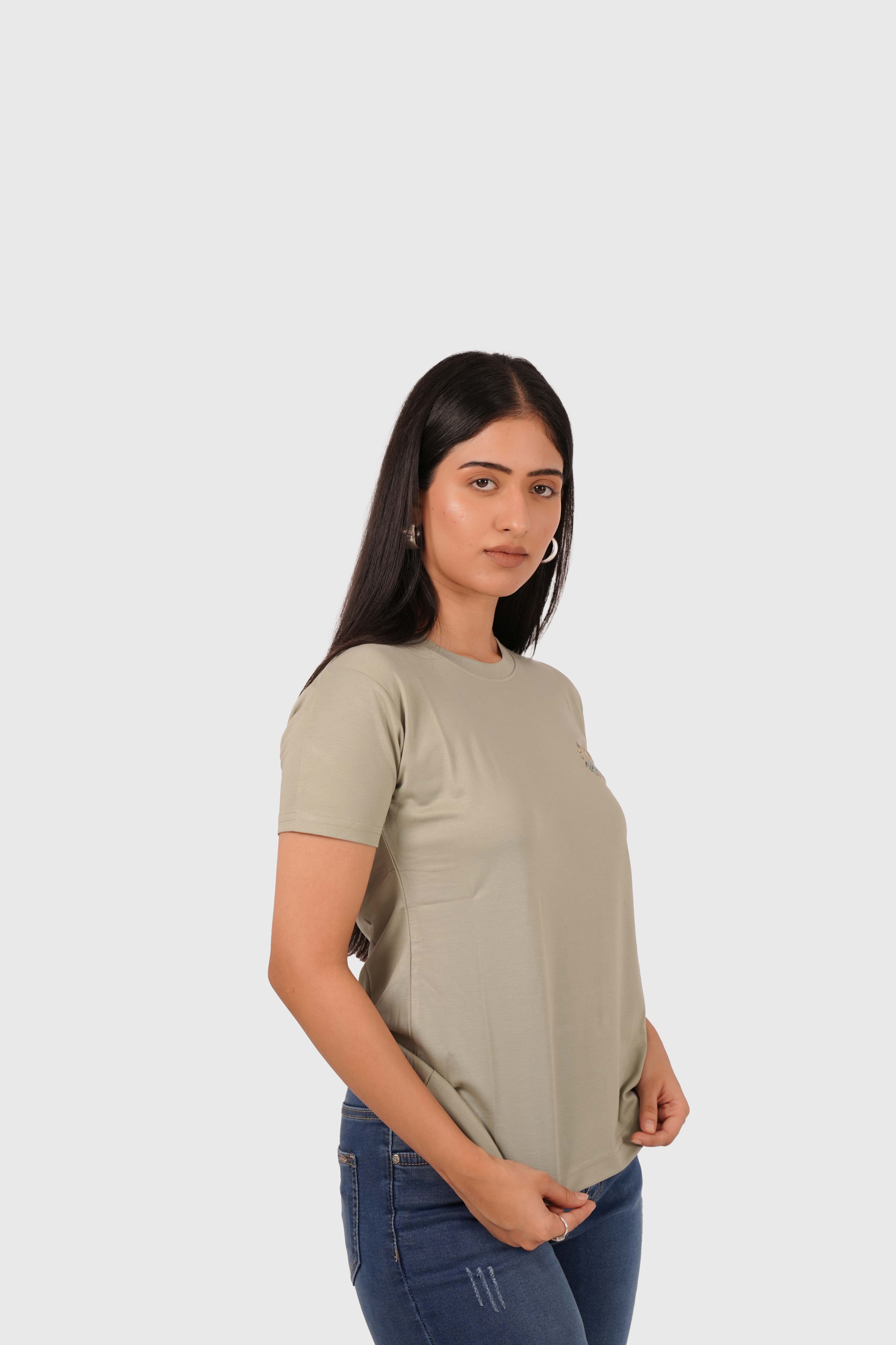 Women’s Sage Green Regular Fit Round Neck T-Shirt