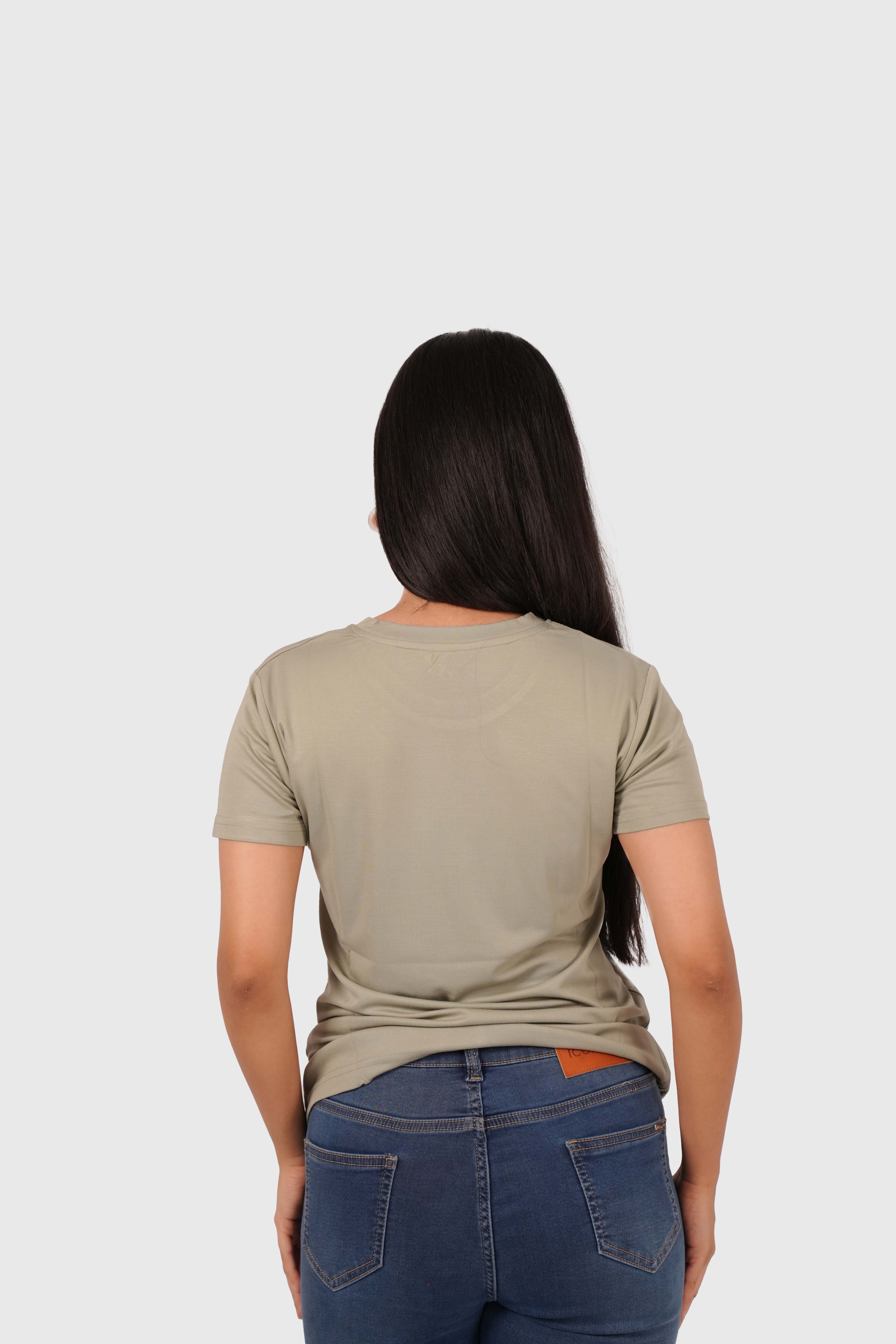 Sage green stretch round-neck T-shirt offering subtle elegance and everyday comfort.