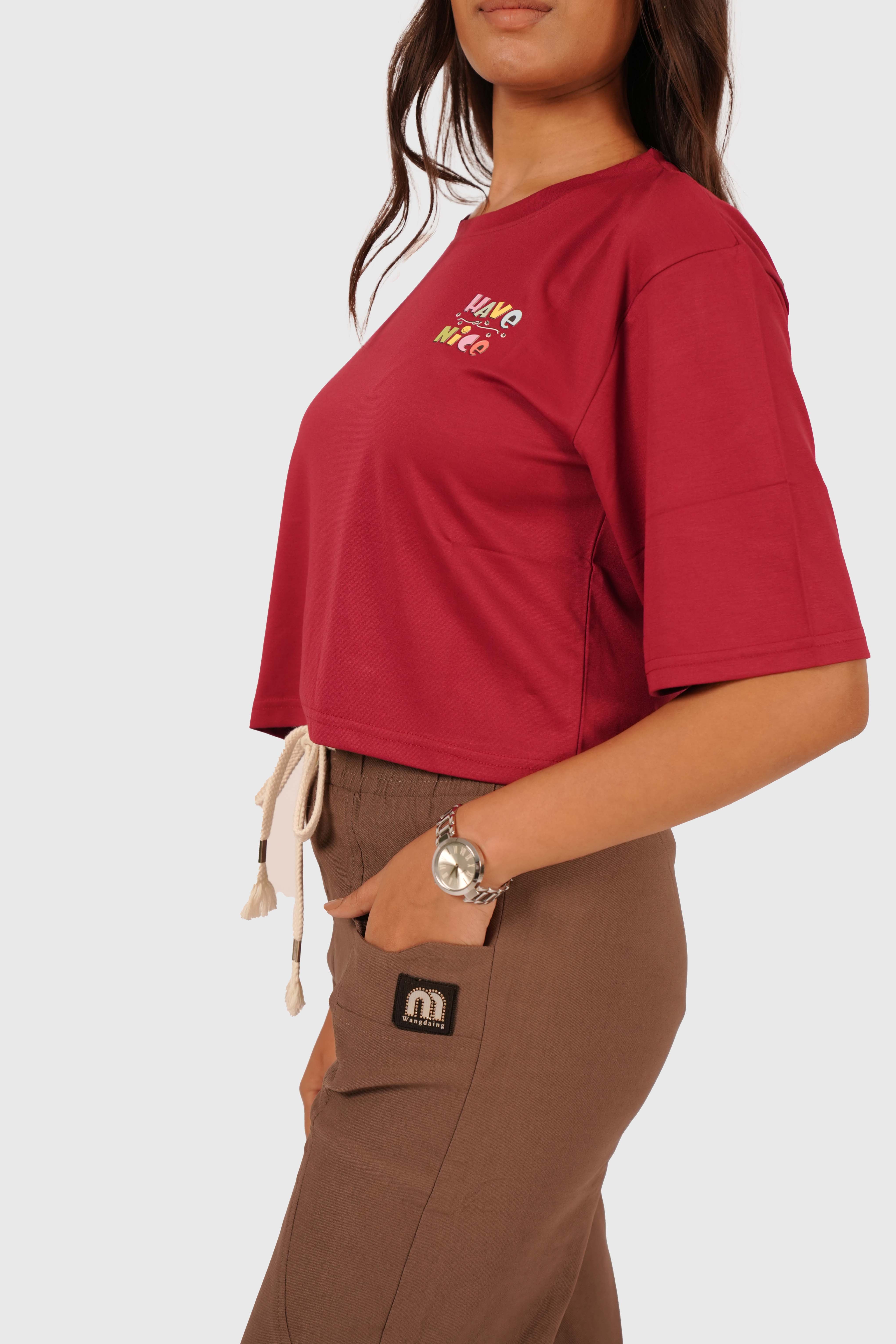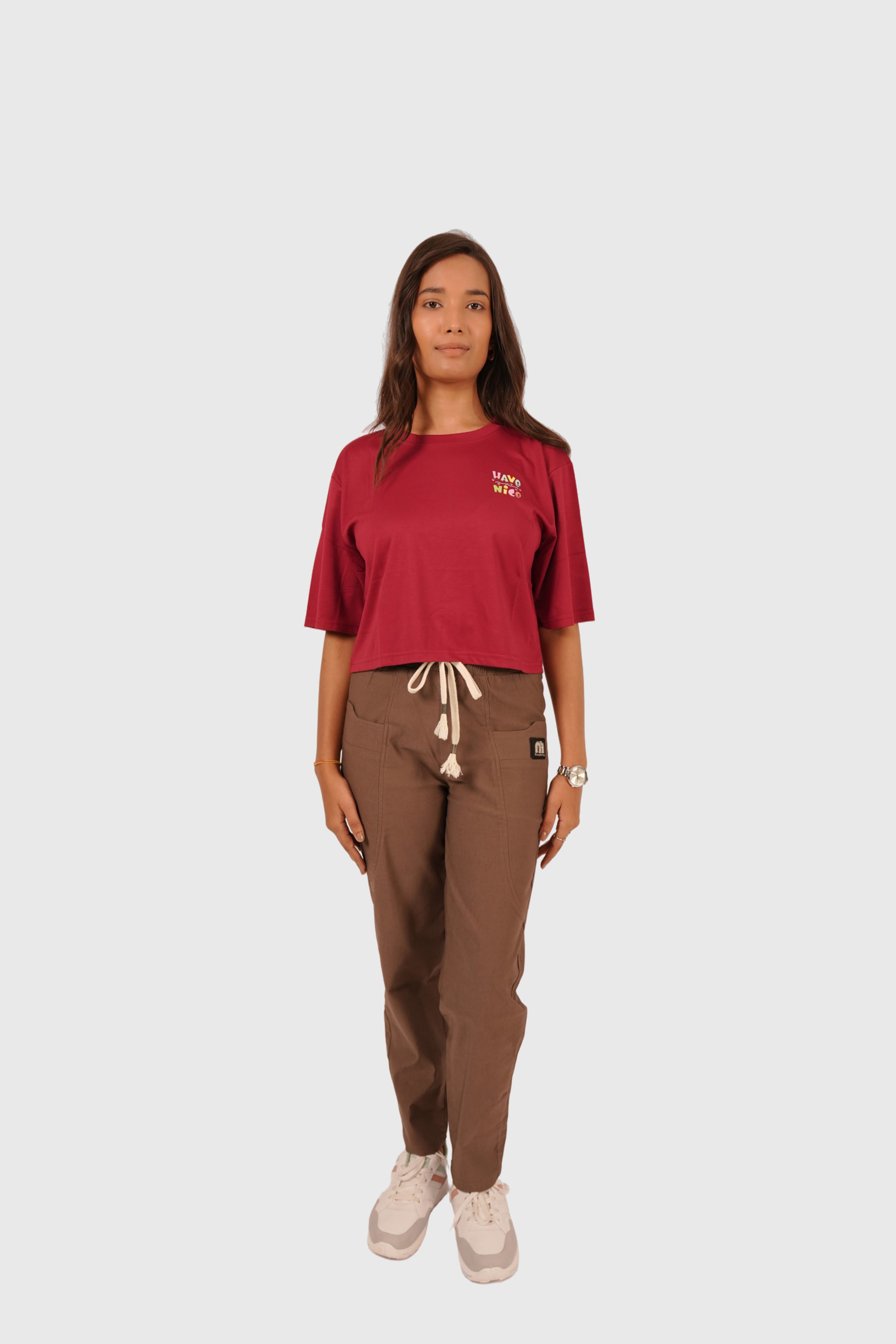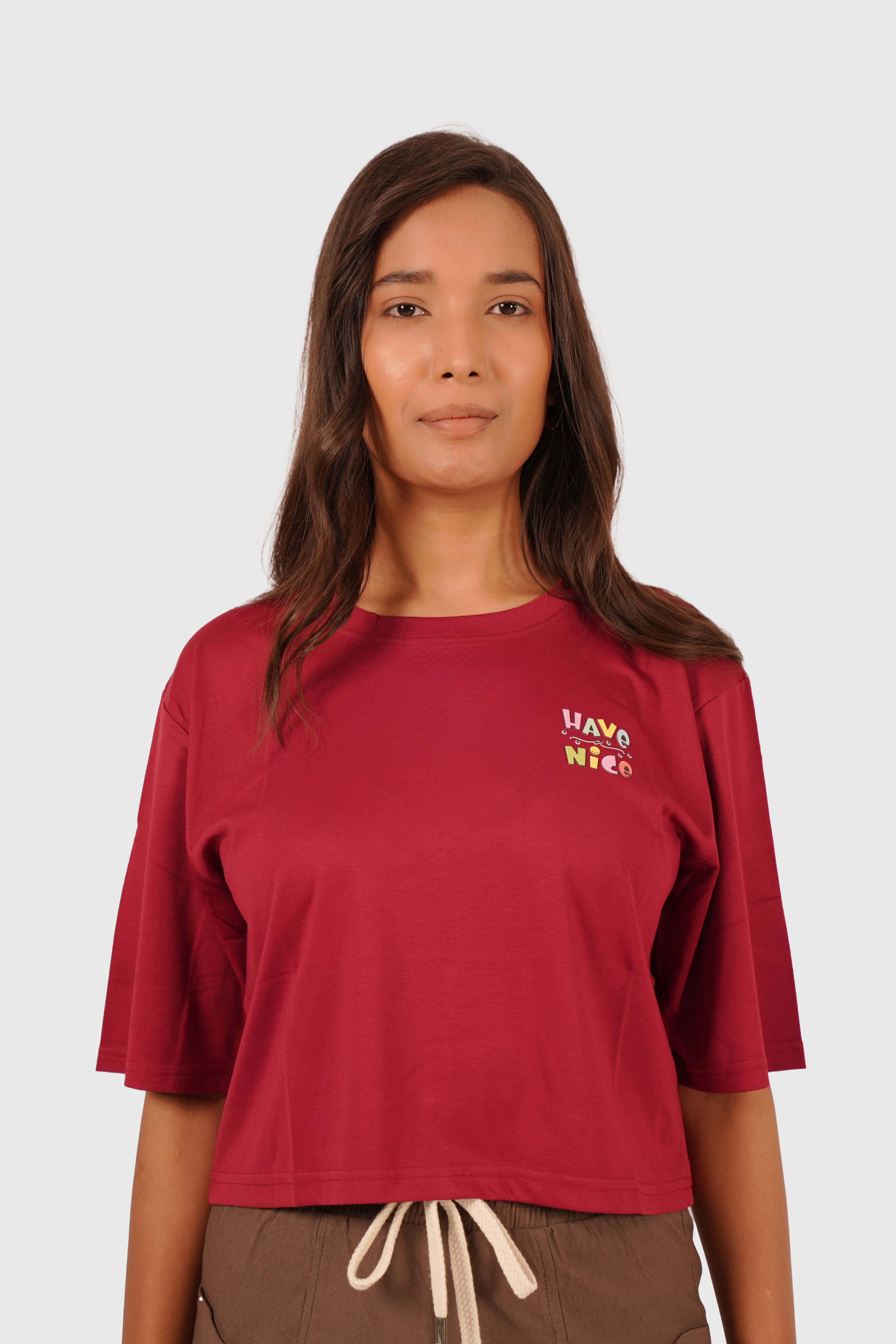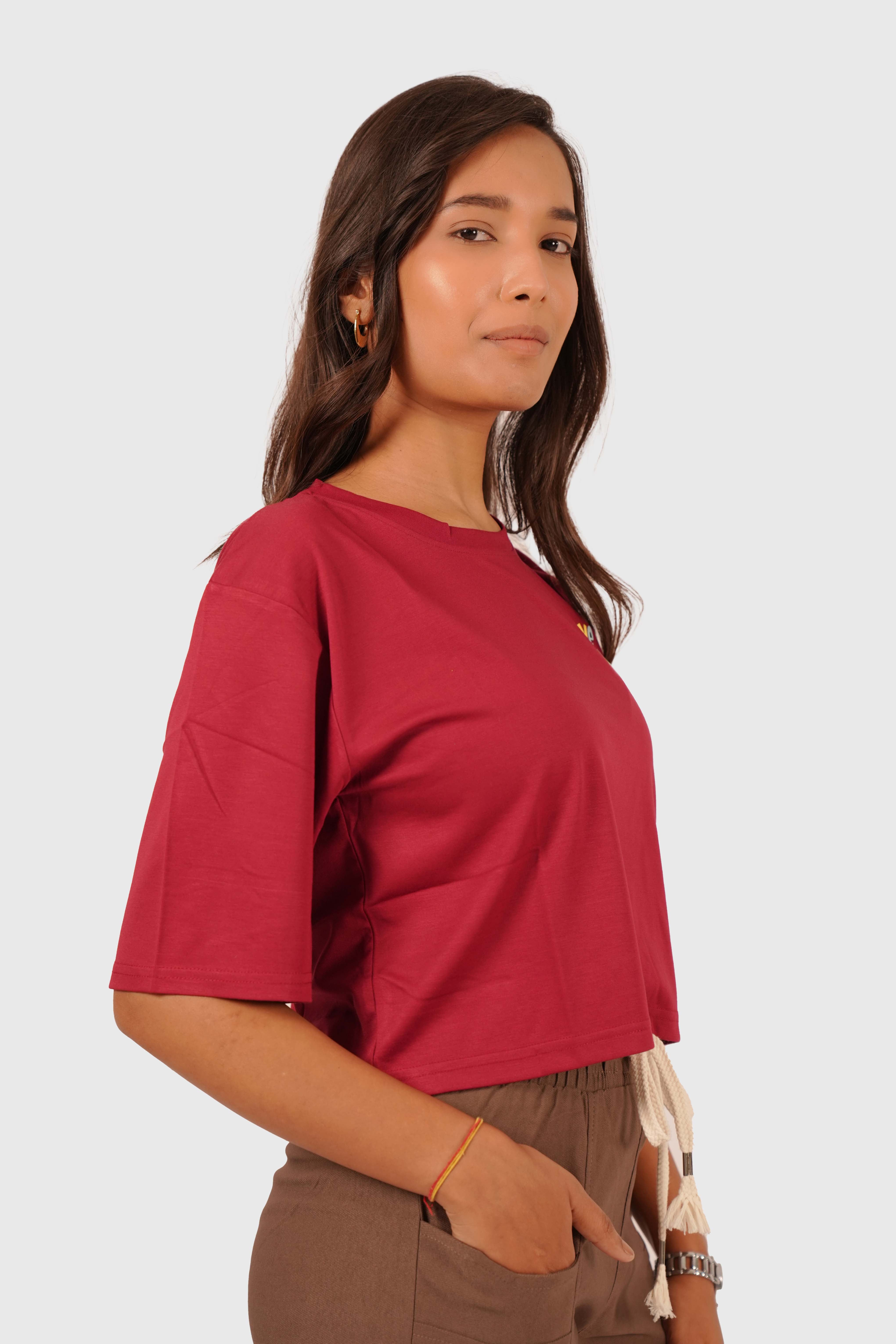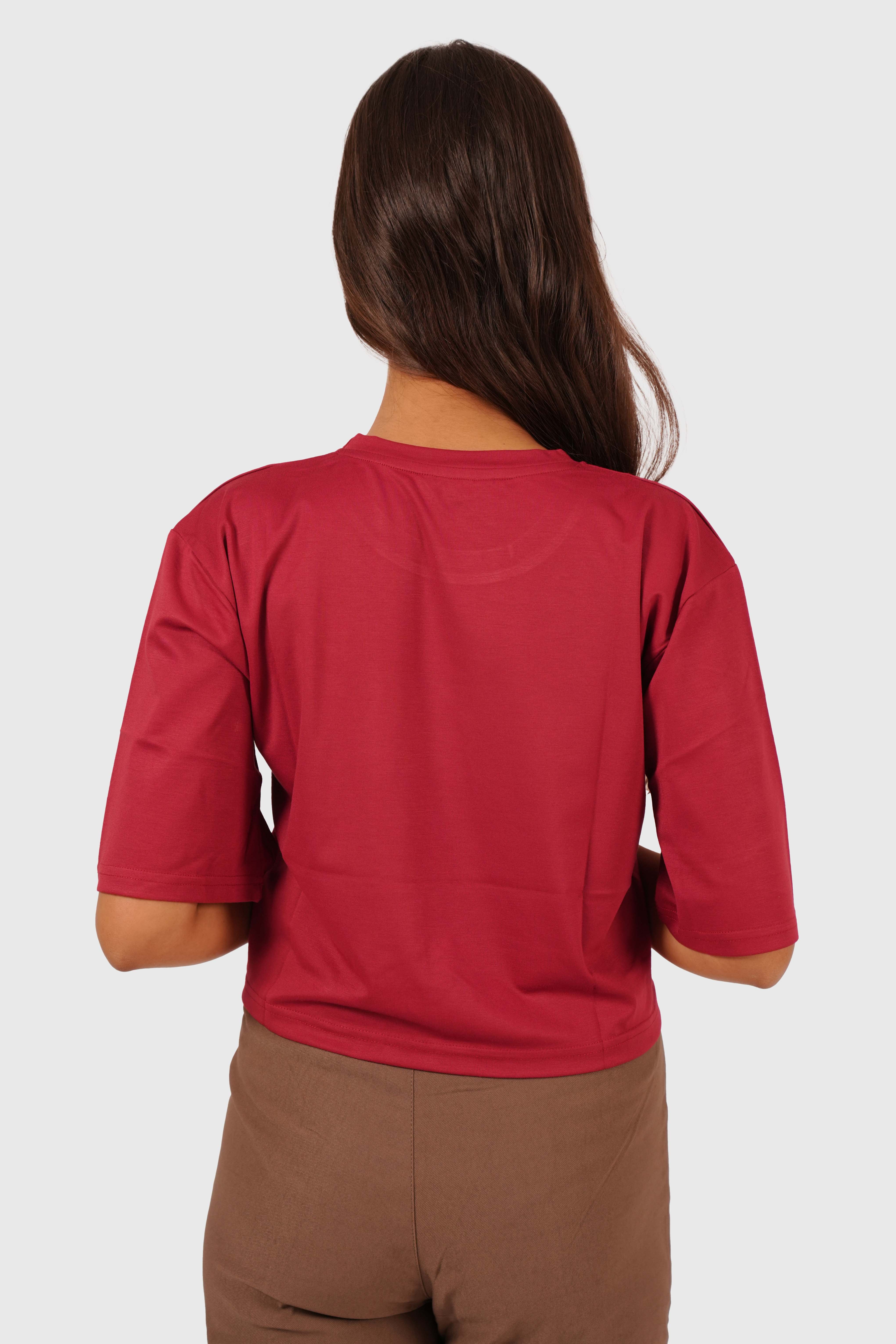 Women’s Maroon Oversized Crop T-Shirt
