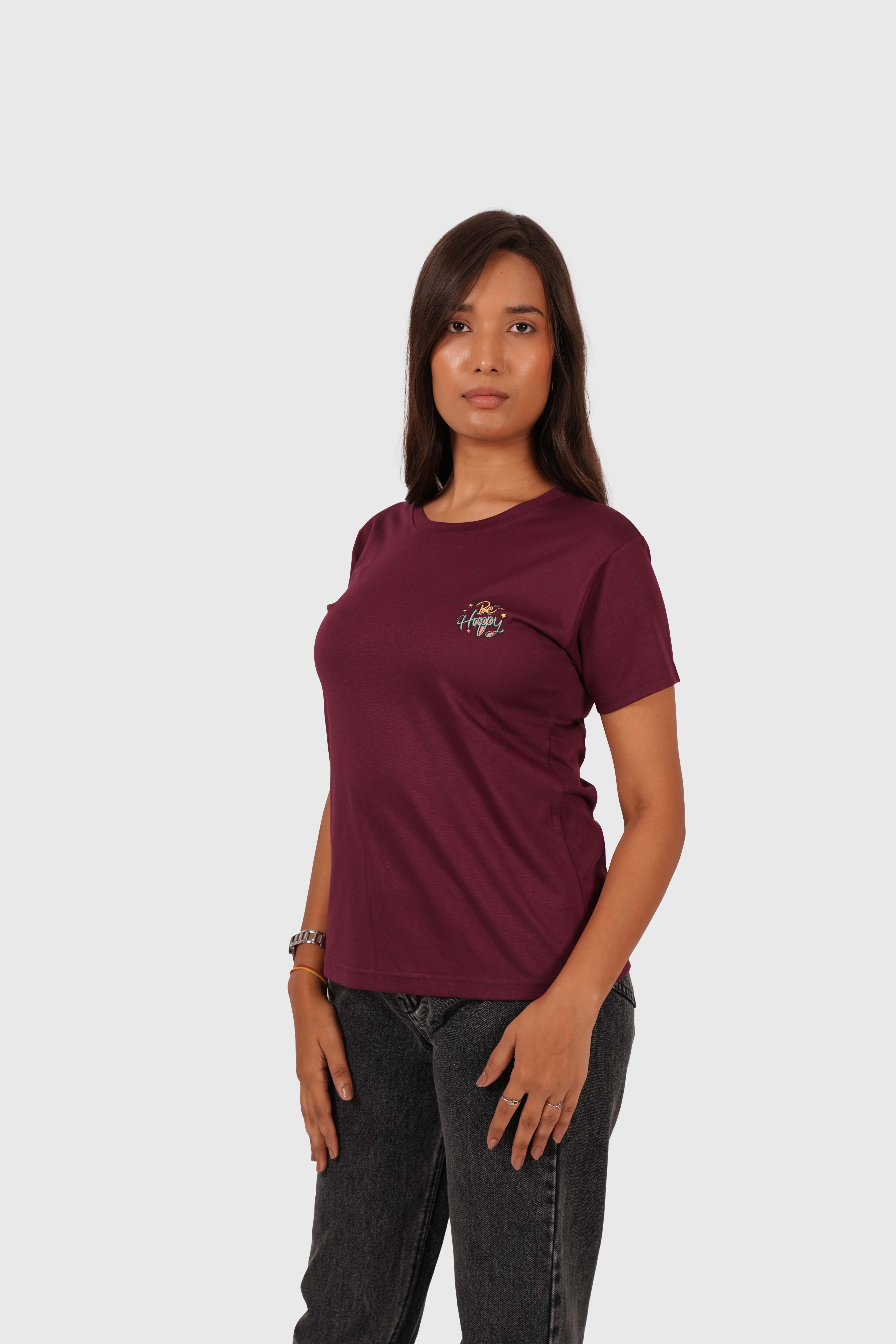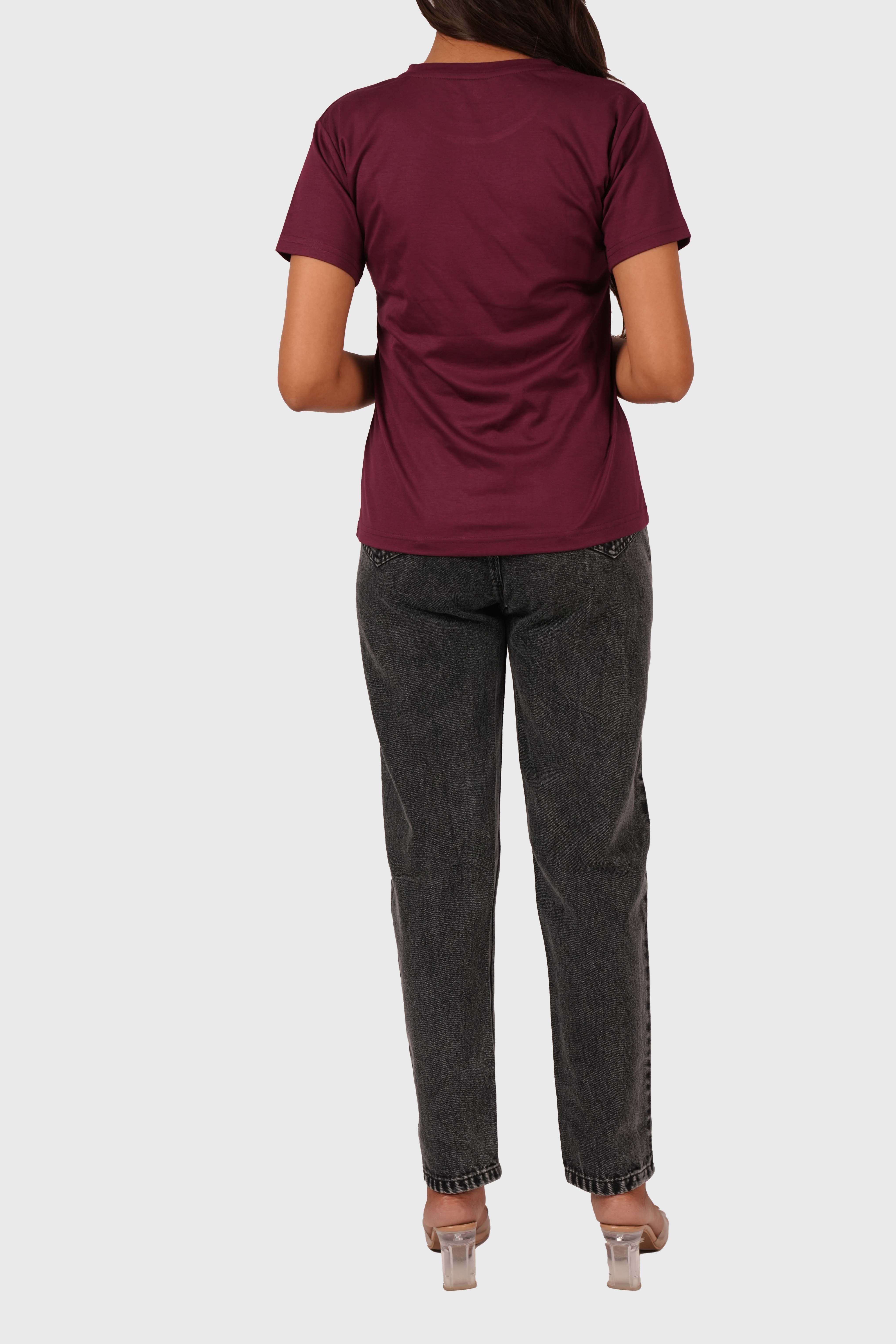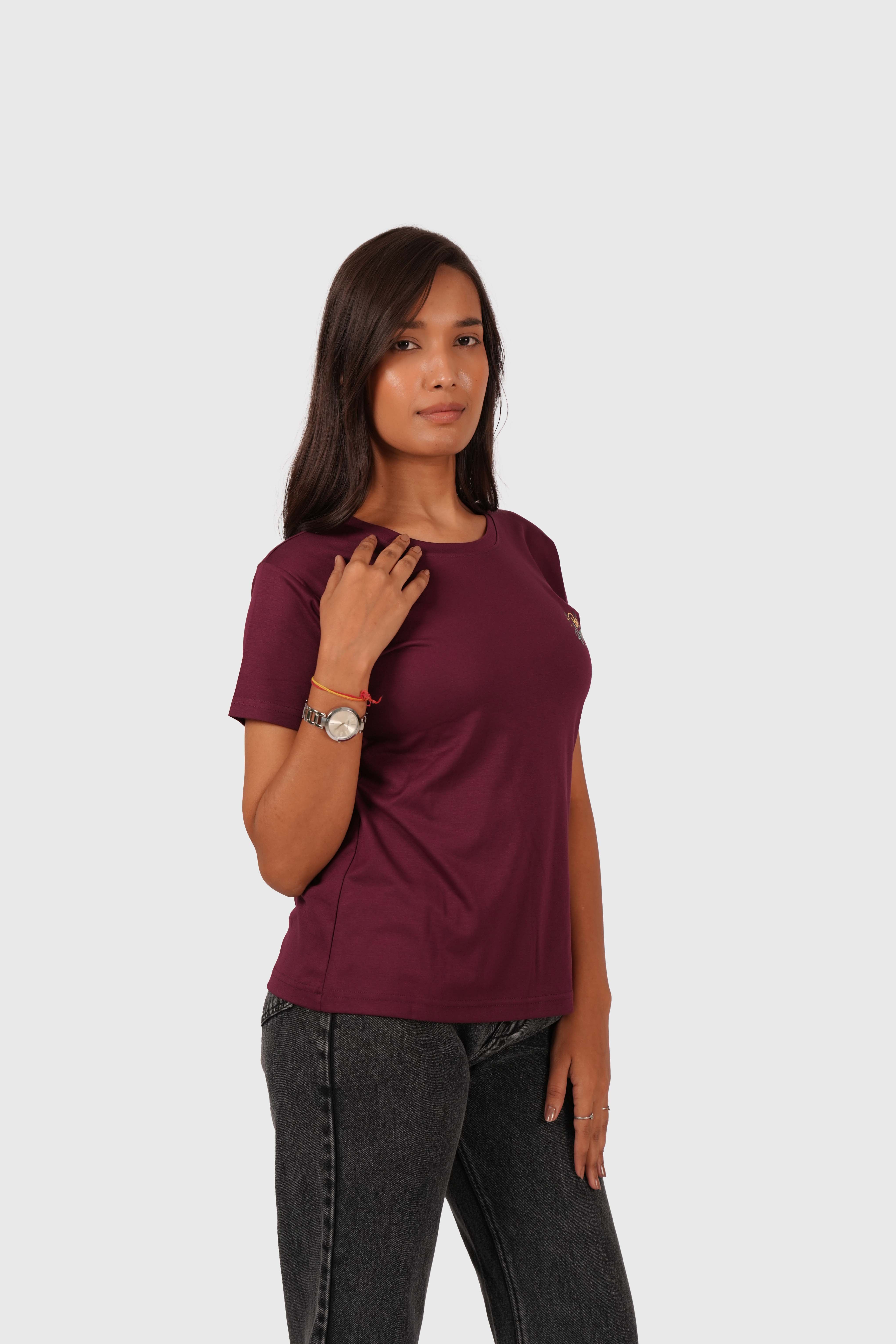 Women’s Maroon Regular Fit Round Neck T-Shirt