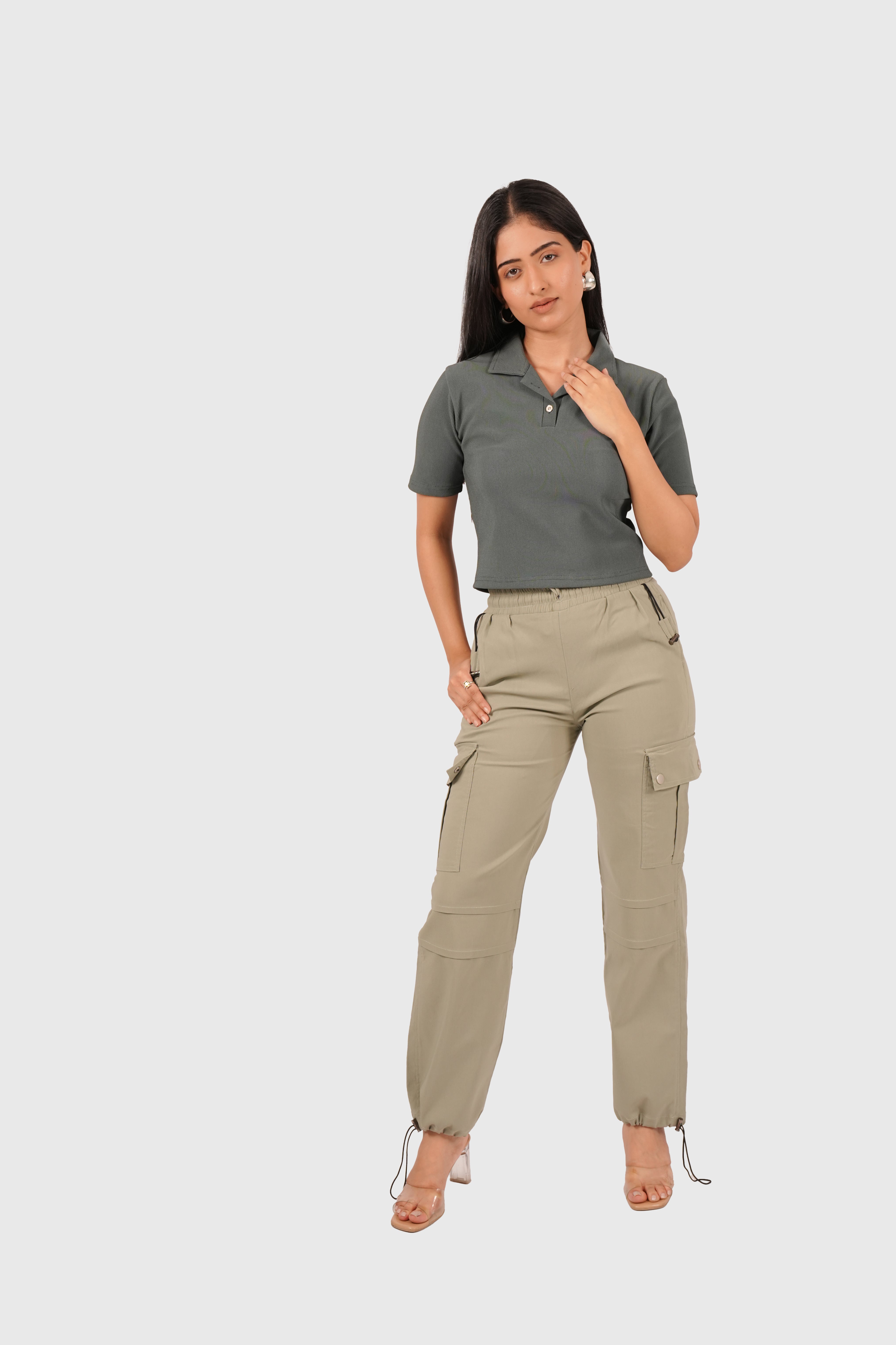 Women’s Sage Green Wide Leg Cargo Korean Pants
