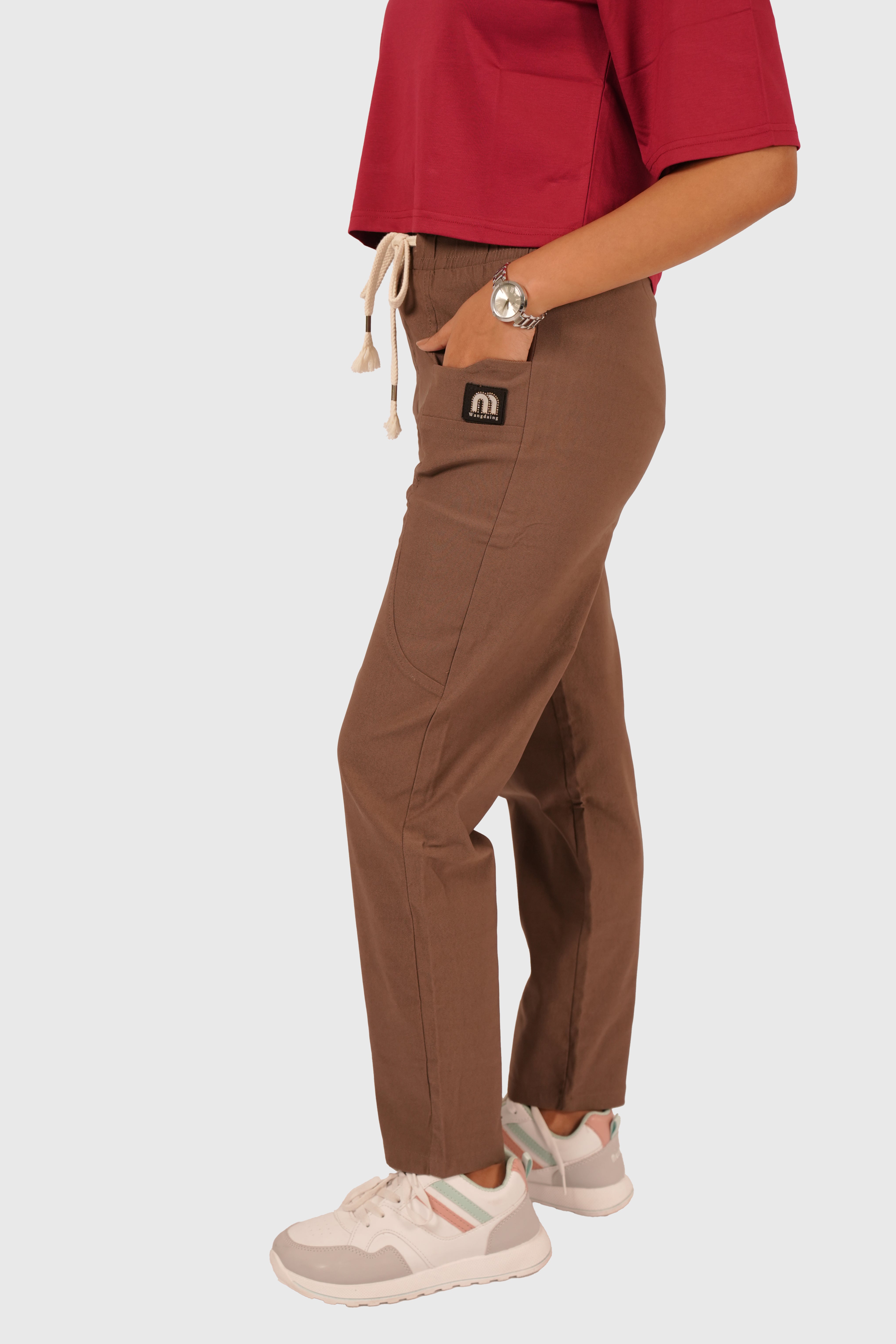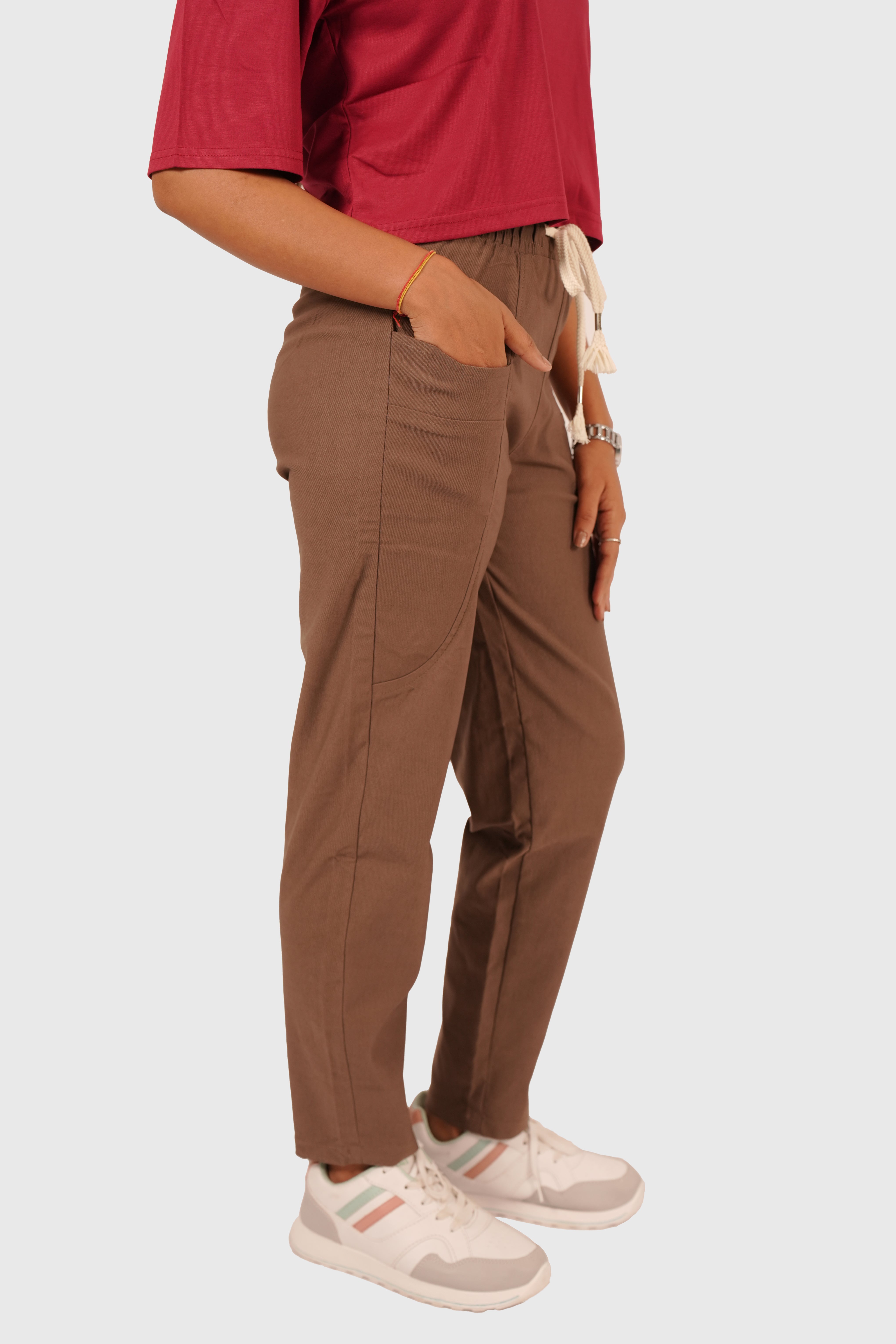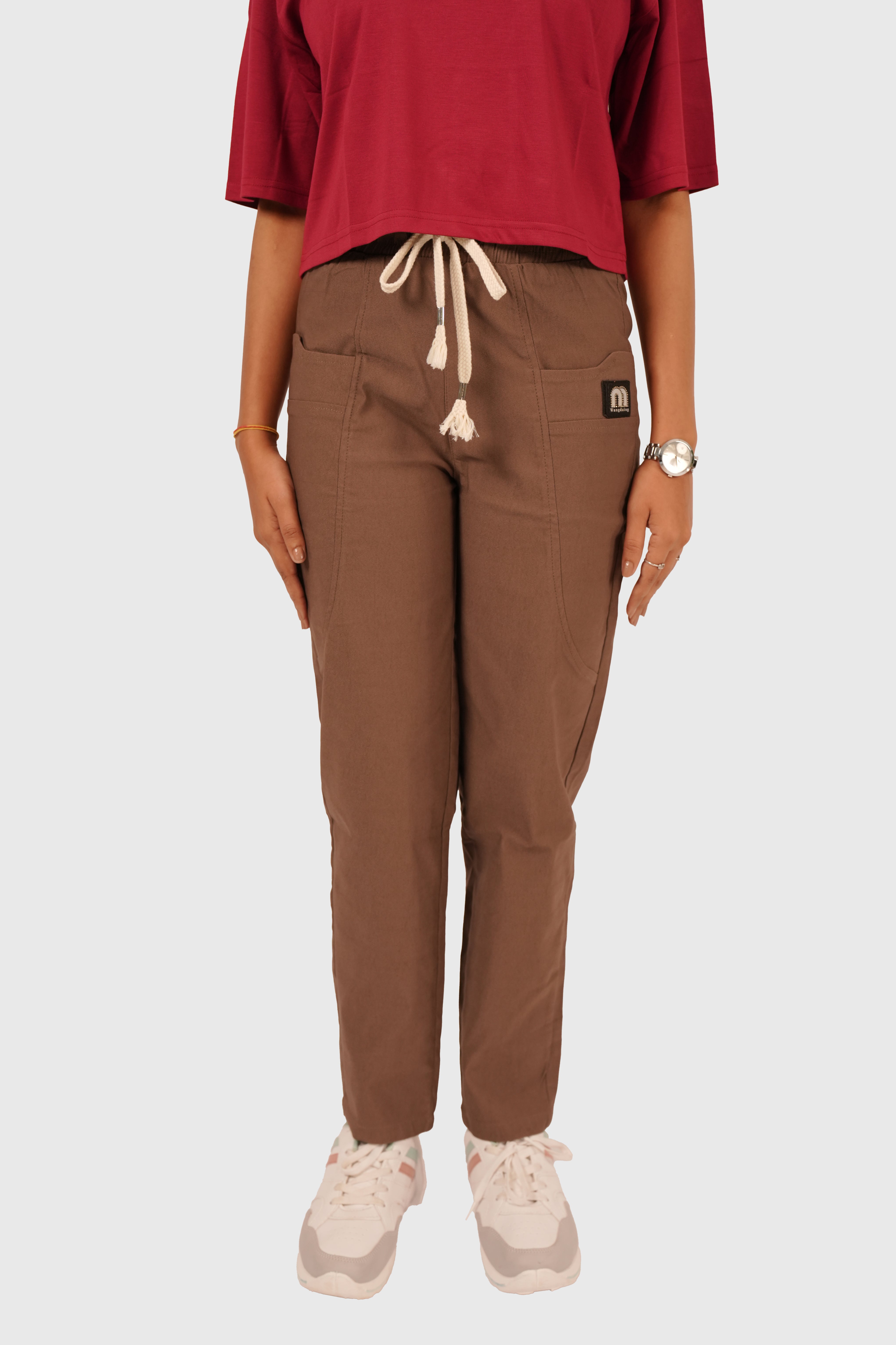 Women’s Taupe Brown Stretchable Joggers – High Waist